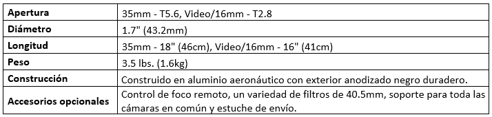Especificaciones