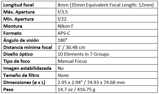 Especificaciones